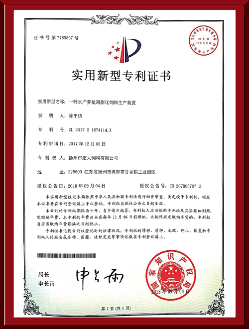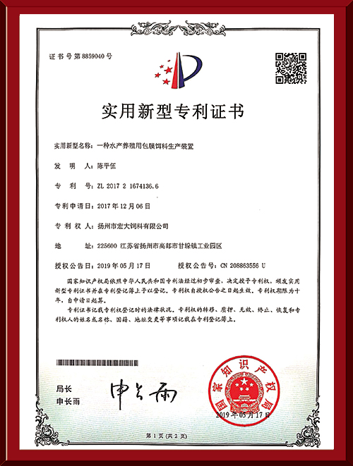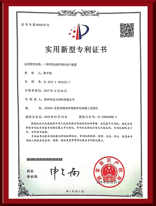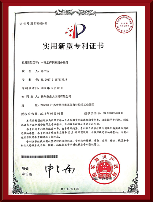 揚(yáng)州市宏大飼料有限公司 揚(yáng)州市宏大飼料有限公司是一家集科研與生產(chǎn)為一體的大型民營企業(yè),座落在魚米之鄉(xiāng)高郵東郊,傍依郵興公路、澄子河,水陸交通便捷,于2002年建成投產(chǎn),占地面積60畝,固定投資1.5億元。現(xiàn)有7條生產(chǎn)線,其中時(shí)產(chǎn)15噸高檔水產(chǎn)膨化生產(chǎn)線2條,均采用國內(nèi)先進(jìn)的真空后噴涂技術(shù)和低溫烘干技術(shù)(飼料內(nèi)的各種營養(yǎng)不受破損)、臺灣宜大高檔蝦料生產(chǎn)線2條和魚飼料生產(chǎn)線3條。